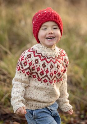 Strikkefasthet: 19 m glattstrikk i bredden på pinne nr 4 ½ måler ca 10 cm.