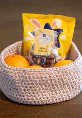 Heklefasthet: 12 fm i bredden med 2 tråder på heklenål 5 mm måler ca 10 cm.